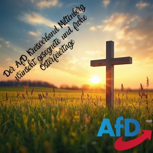 Liebe Mitglieder, Freunde und Unterstützer des AfD Kreisverbandes Miltenberg,Ich möchte euch im Namen des gesamten Vorstandes Ein schönes und besinnliches Osterfest wünschen.Ich hoffe ihr findet etwas Ruhe im Kreise eurer liebsten. In diesem Zuge möchte ich noch alle Mitglieder an die Mitgliederversammlung kommende Woche Samstag  erinnern. Erscheint zahlreich und wählt eueren Vorstand. Mit Patriotischen Grüßen,Der… Frohe Ostern! weiterlesen